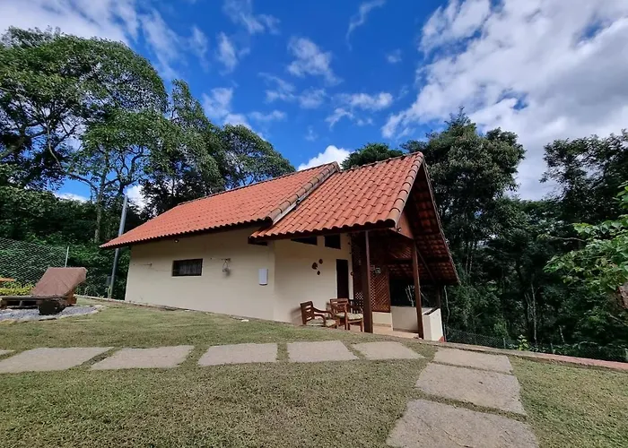 Situated 4.5 𝗸𝗺 𝗳𝗿𝗼𝗺 Museu Duas Rodas, the 1-bedroom Chale Fazendinha Bocaina de Minas villa entices guests to explore various tourist attractions in the area.